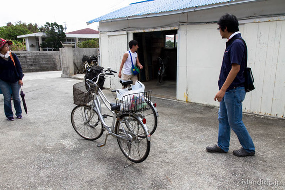 港から坂を登ってすぐのパーラーさばにで借りられます。TEL:098-948-3893 - 船待合所