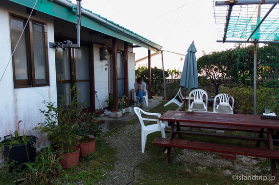 上の写真は「小やど SAWA」の庭、下は久高島宿泊交流館です。