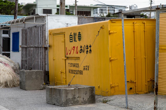 島に一軒ある「あずまレンタサイクル」で借りられます。集落内にある商店で申し込めば、港にある黄色いコンテナに置かれた自転車を借りられます。1日500円。