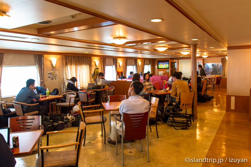 「4甲板にレストランの文字がある!!」と喜び勇んで行ってみると、そこにはただテーブル席が並んでいるだけのスペースでした。レストラン改め二等一般席(椅子席)になっている模様。
