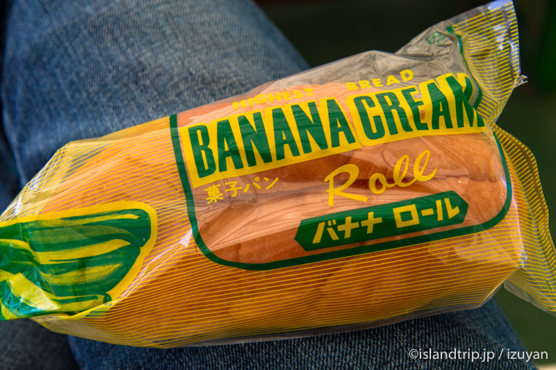 諦めて、案内カウンターのところにあった売店でバナナロールなる菓子パンとコーヒーを買います。バナナと名前はついていますが、甘いバタークリームが挟まったコッペパン。素朴な味わいが旅情を誘います。作っているのはこれから向かう道後のパン屋でした。
