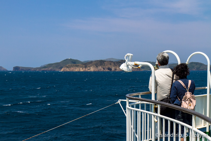 デッキに出て海を眺めながら朝食を食べていると、やがて船は最初の停泊地、知夫里島に近づいてきました。