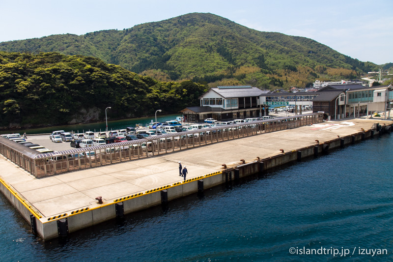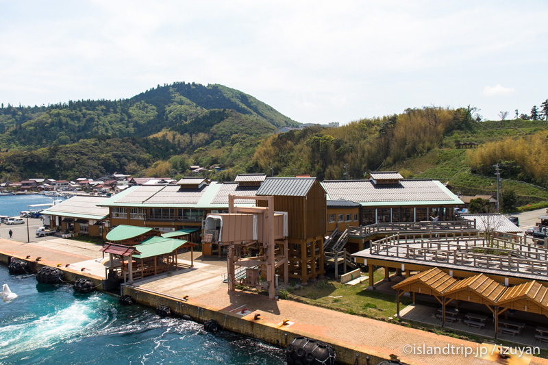 30分ほどすると、お隣西ノ島の別府港に接岸。瓦葺きの立派なターミナルの二階へと降りるため、タラップが掛けられます。