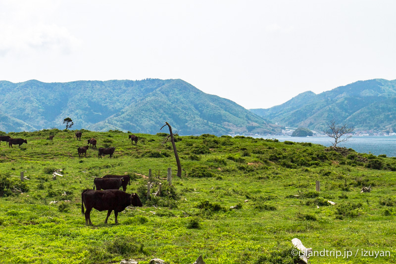 途中、今度こそ「隠岐牛」であろう牛が放牧されている様子を眺めたり、道沿いに田んぼが広がっている中を走り抜け、宇受賀地区へと至ります。
