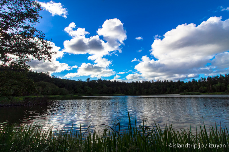 姫沼は、かつて付近に三つあった湧水池の流出口をせき止めてひとつになり、その後ヒメマスを放流したことで「姫沼」の名がつけられたそうです。周囲の森もトドマツやカラマツなどの針葉樹が茂り、南の島とはまったく違う雰囲気。
