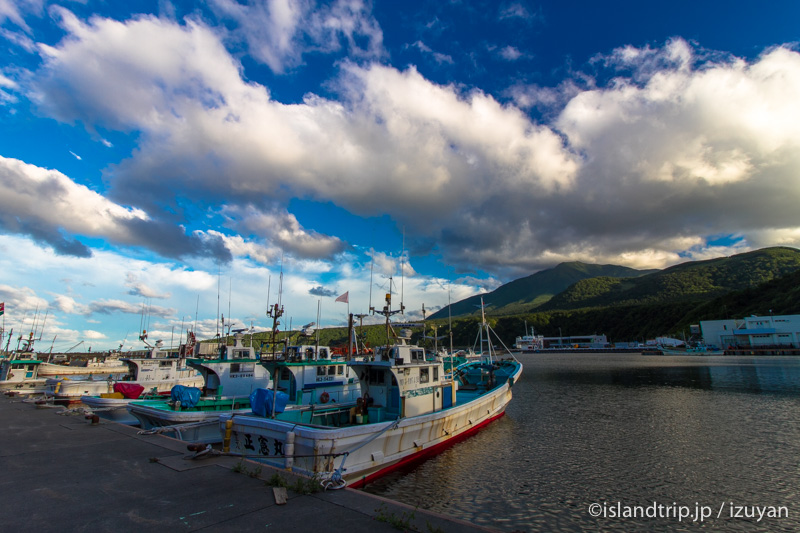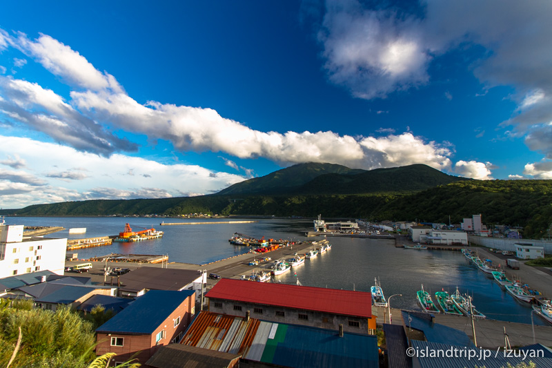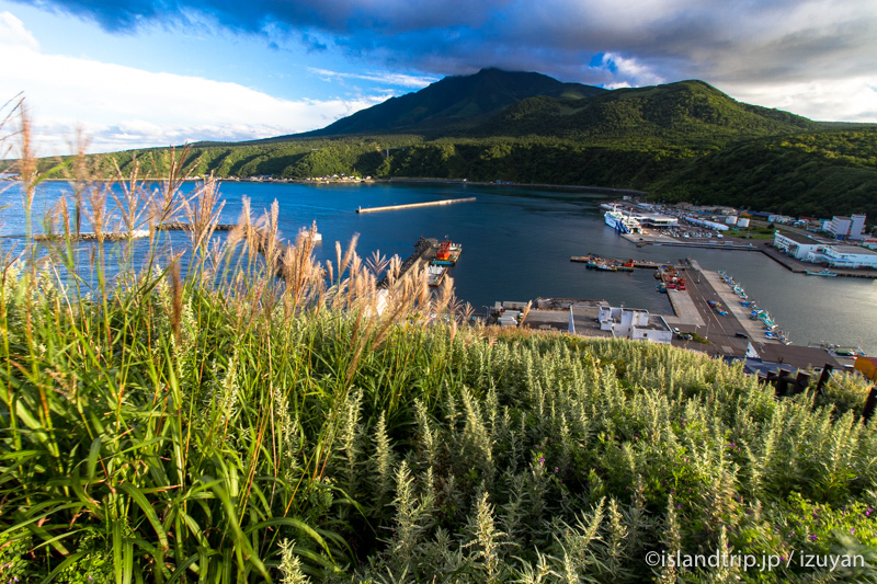 8月の終わりといえど、季節は秋。冷えた空気を感じながらスクーターを走らせると、鴛泊港を一望できる場所に来ました。