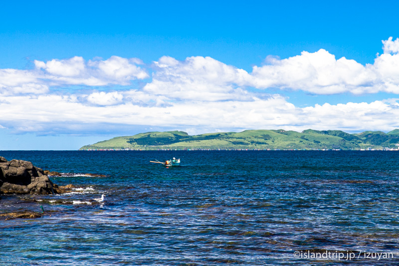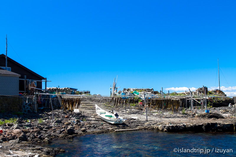 沖には小舟。今季最後の昆布漁か、それともウニを獲っているのでしょうか。