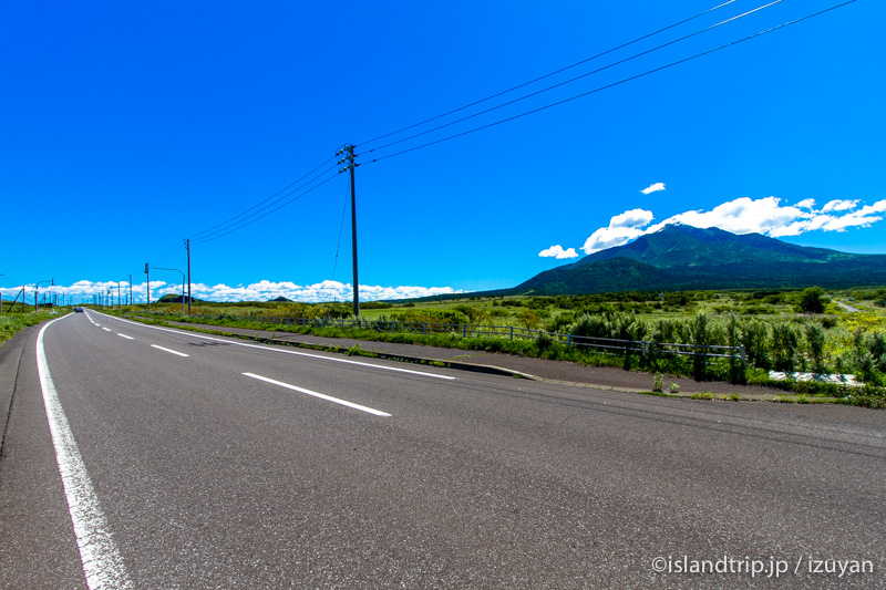 島の北側を過ぎ、道はやがて西側を回ります。利尻富士の山頂の雲がようやく取れてきたのもこのころ。