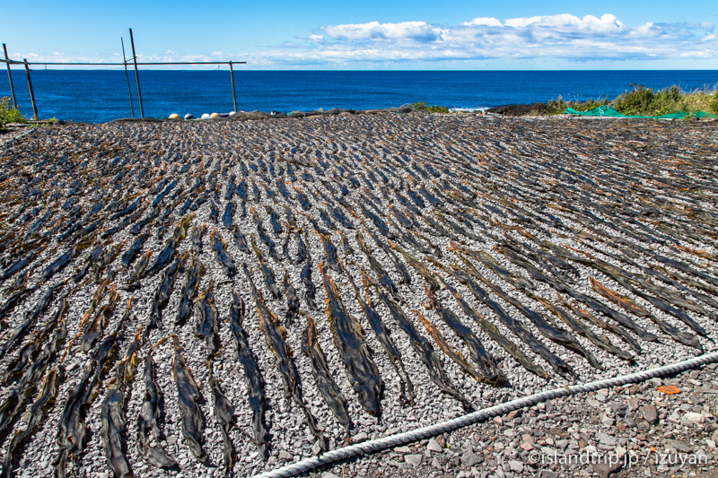 道沿いには、シーズン最後と思われる昆布が干されています。利尻らしい景色になんとか間に合ったようでした。