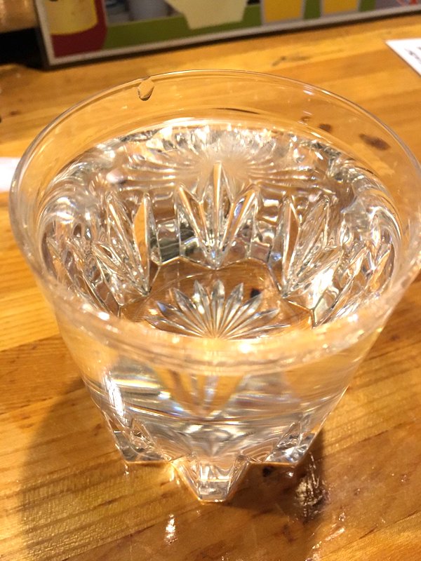 大将、テンパってはいるもののとても気さくでした。つぶ焼きが出てきたのは1時間後でしたが、一杯目のコップ酒が空になったタイミングだったのでむしろよかった。おかわりをお願いすると、なみなみと注がれました。