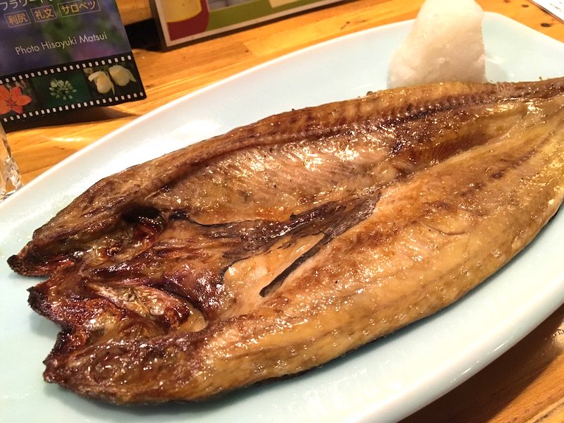 とりあえず、コップ酒と塩辛はすぐに出てきましたが、ホッケは30分後、鮭おにぎりは40分後にやってきました。ホッケがやわらかくて美味い。
