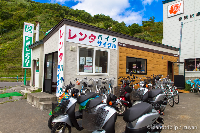 ターミナルを出ると、当たり前ですが利尻島とは違う雰囲気。すぐそばにあるお店でレンタルスクーターを借ります。愛想のいいお兄さんが対応してくれます。予約は明後日まででしたが、台風の影響で荒れそうだから明日には帰ります、と伝えます。