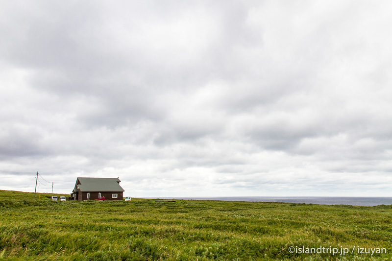 風が増してきている中、島の南の香深港から北端のスコトン岬近くまで原付で移動。利尻島を出る時は見えていた青空も、次第に重い雲に覆われてきました。