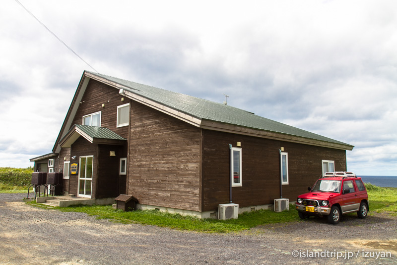 時間にして1時間弱くらいでしょうか、たどり着いたのはスコトン岬の近くにある宿「FIELD INN 星観荘」さん。日本海を望む草原に本当にポツンと佇むロッジ風の建物。最果て感が凄まじい。そして、見ただけで心躍る宿です。