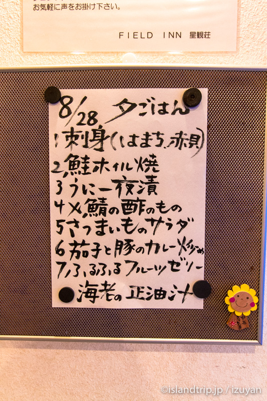 夕食は同宿の方々と和気藹々と済ませ、食べ終わった人は自分で食器を片付けます。これも小笠原のユースっぽい。食後しばらくすると、恒例のミーティングが始まりました。