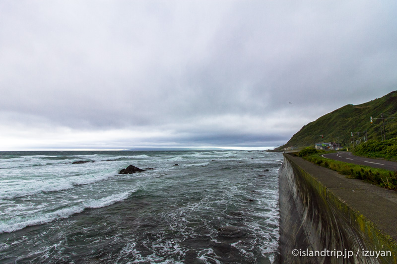 朝食を済ませ、出発の準備をして宿の車組に先んじて出発します。強い風の中、40分かけて香深港まで戻ります。雨が降ってきませんように・・・。
