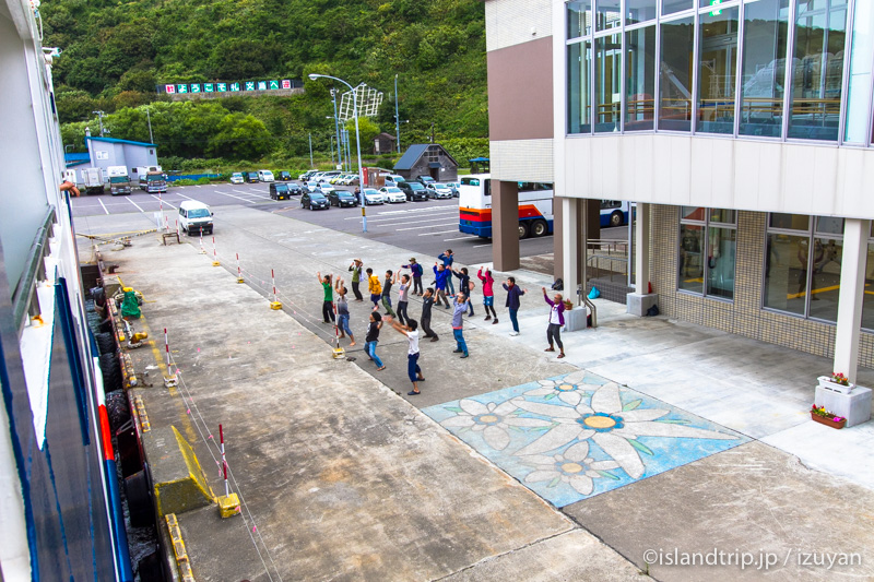 「結構しっとりしてしまった・・・」それでも強風にあおられつつもなんとか香深港を目指します。